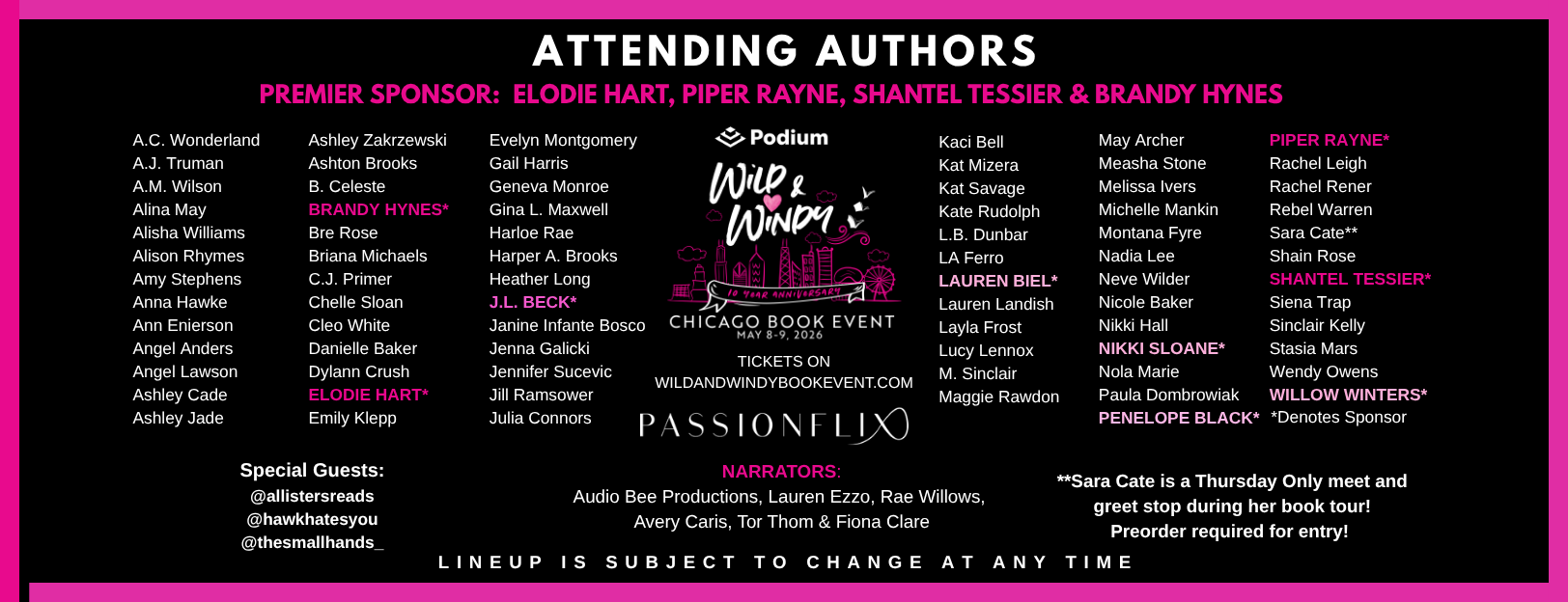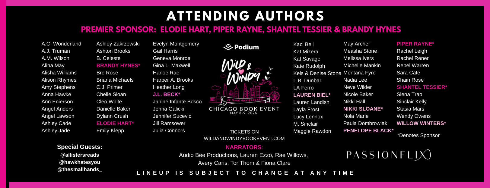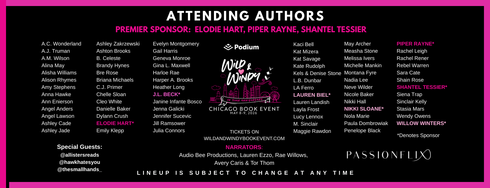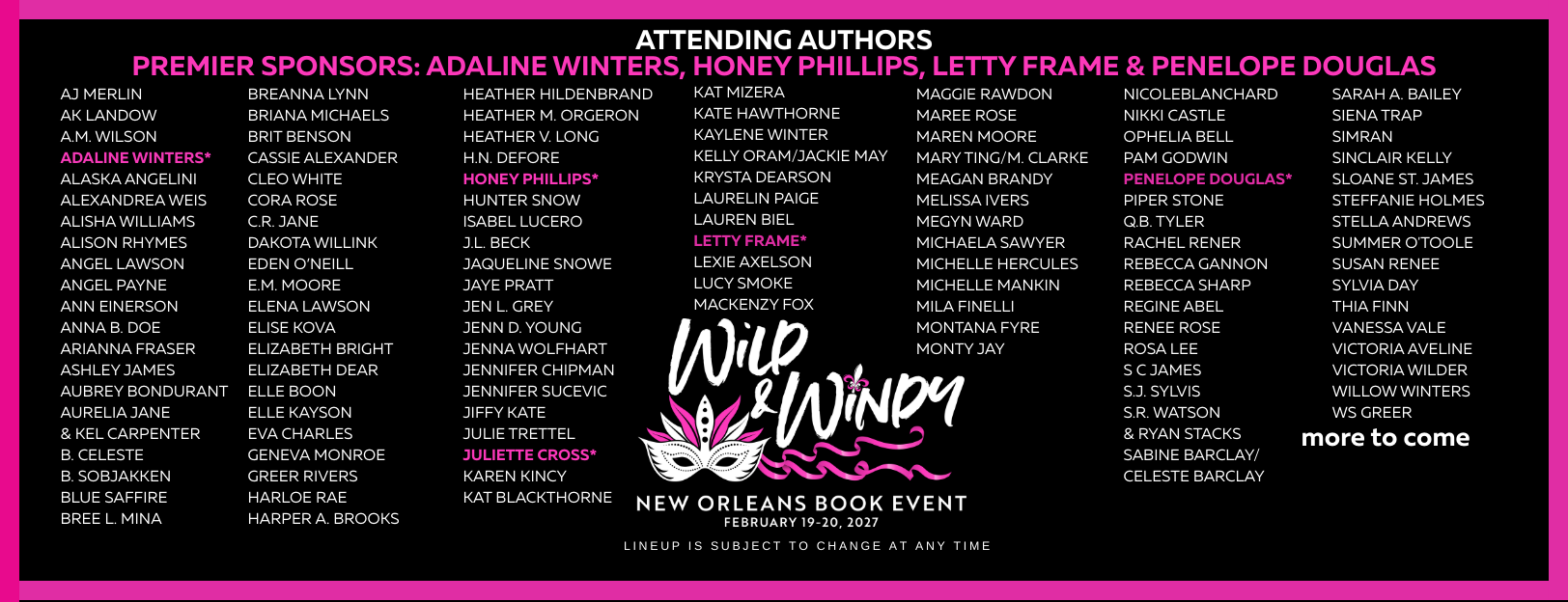 Wild & Windy Book Events are hosted annually in Chicago, New Orleans and Vegas by Nicole Huffman & Michelle Mankin. In past years we have donated to several charities. In 2025 and 2026, we are making donations to the food banks in the cities where our signings are held. To find a local food bank near you, go to FEEDING AMERICA.